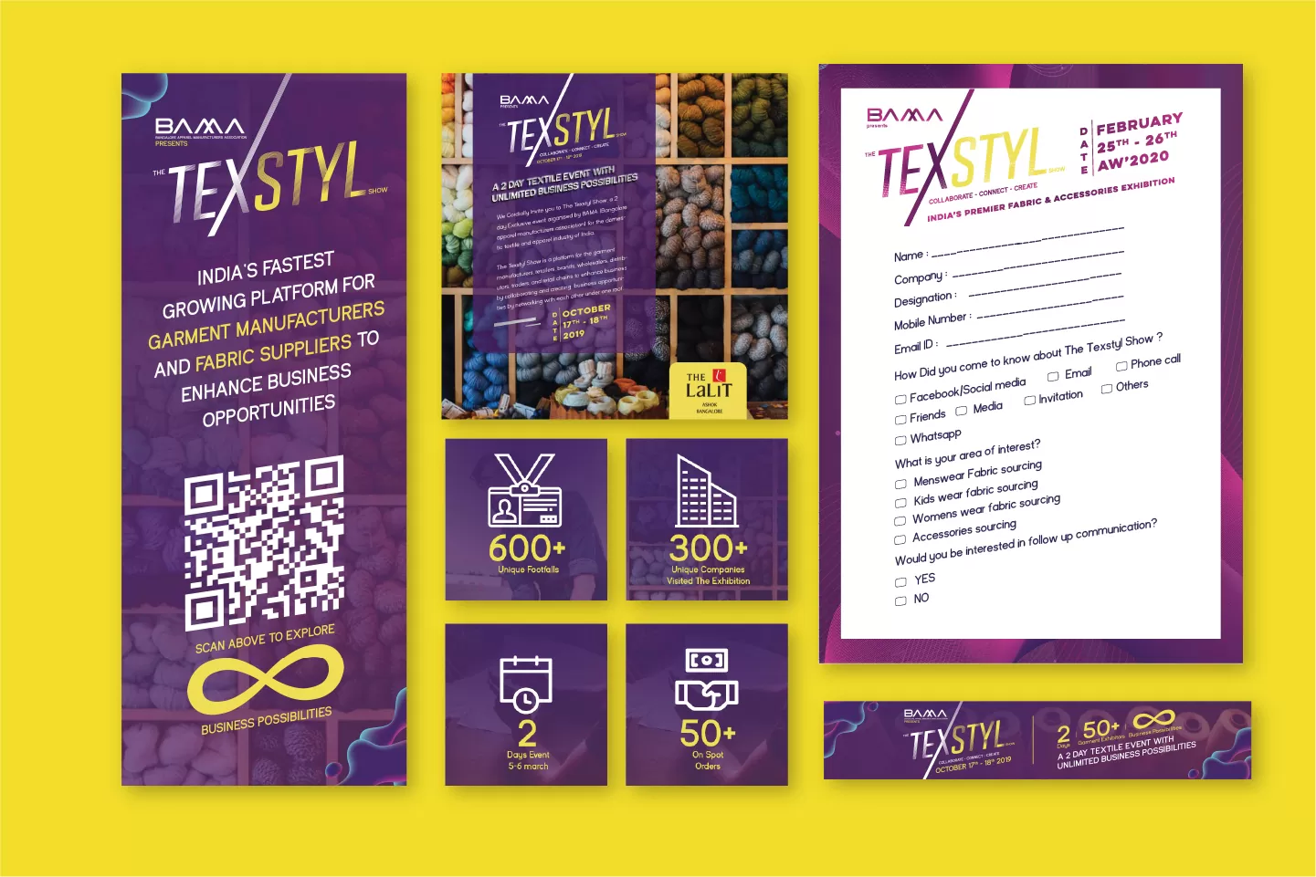 To position The Texstyl show as a Premier fair for Fabric and Accessories through its branding and its brand language was the challenge placed by BAMA. We went into the core of the fabric/textile world. The strands of the thread which creates the fabric.