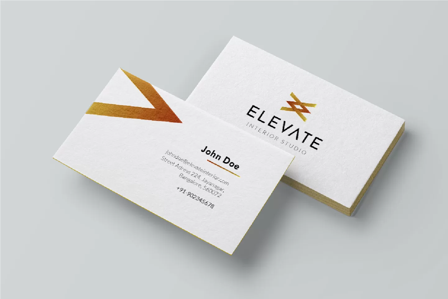 All their touchpoints had to be uniform and look elevating. The idea behind Elevate’s branding was to bring things together and create magic. An Arrow going left and an arrow going right to merge to create the elevated logo. Being an interior studio, their focus was heavily on warm colors and minimalism which could reflect their products and services.